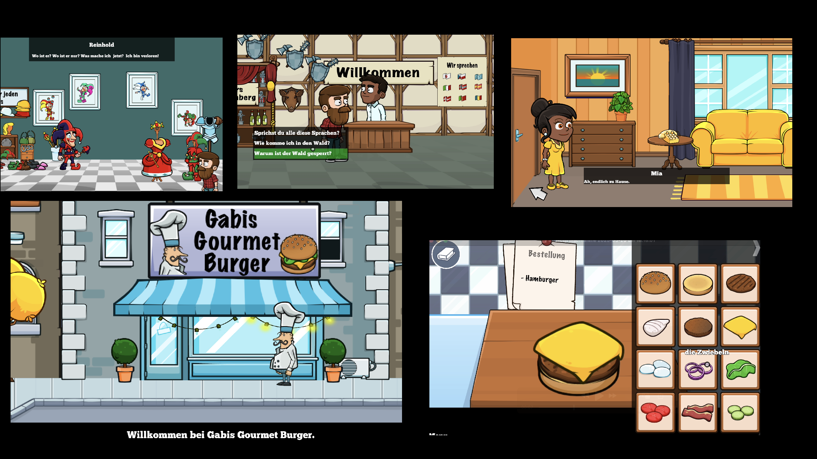 Language Adventure Games is a free browser-based point-and-click adventure series designed to help you learn German (A1–B1 level) through interactive gameplay.